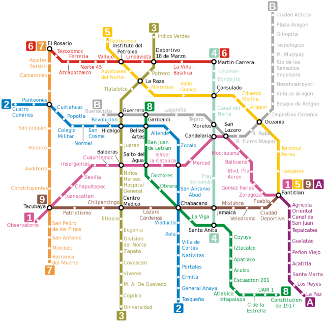 A cidade do México tem um sistema de Metrô de 225,9 km , maior da América Latina, inaugurados a partir de 1969 com 12 linhas e 195 estações, transportando aproximadamente 4,5 milhões de pessoas todos os dias , igualando-se a São Paulo , ficando atrás de Moscou com 7,5 milhões , Tóquio com 5,9 milhões e Nova York com 5,1 milhões.