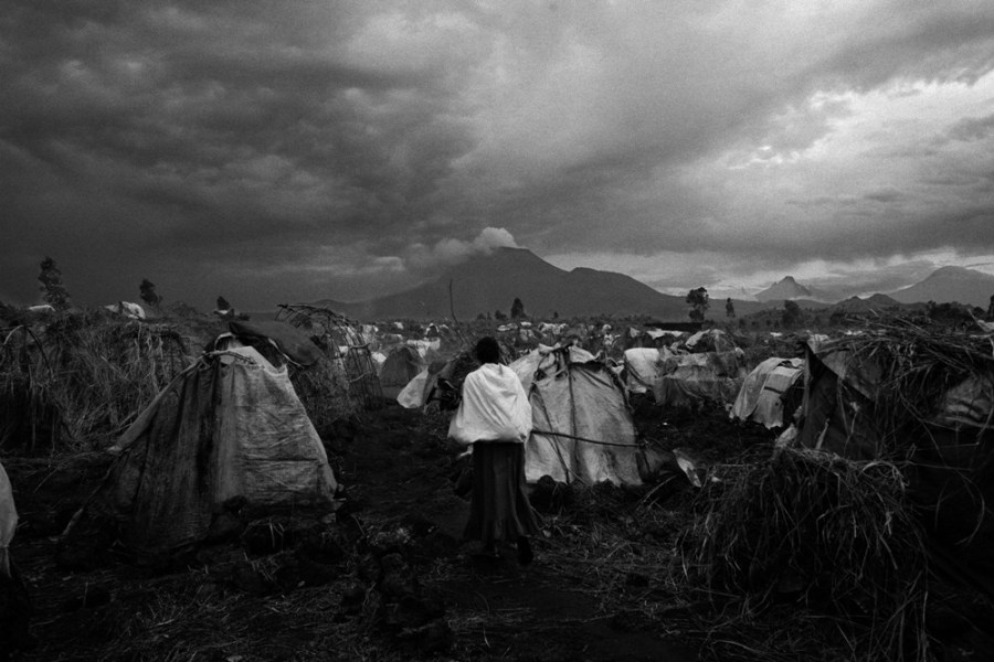 Displaced make camp in Goma after they fled fighting in Karuba and Mushake. Fighting rages between Government forces and General Nkunda in Karuba, Kivu Province DRC.